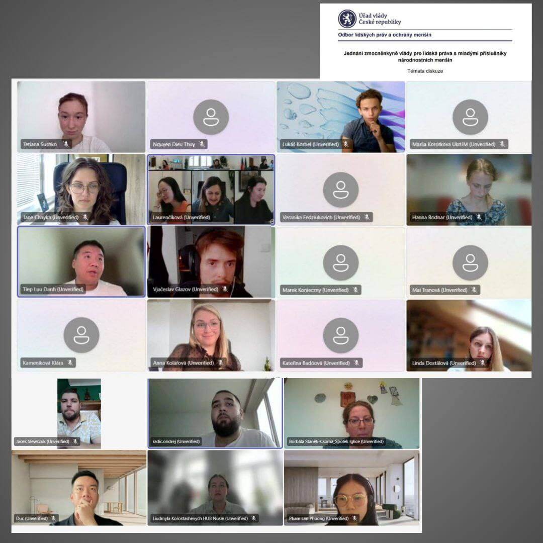 Cílem diskuse bylo identifikovat aktuální problémy, kterým čelí mládež z národnostních menšin v ČR — ukrajinské, německé, polské, romské, maďarské, gruzínské, běloruské a ruské — a navrhnout konkrétní cesty jejich řešení.