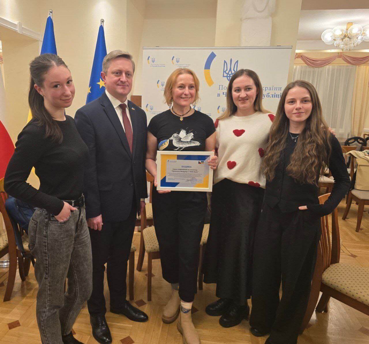 Upřímně děkujeme panu velvyslanci Vasylu Zvarychovi za vysoké ocenění naší práce a projevenou důvěru. I nadále budeme pokračovat v podpoře ukrajinské komunity, rozvoji kulturních a vzdělávacích projektů a posilování ukrajinské přítomnosti v České republice.